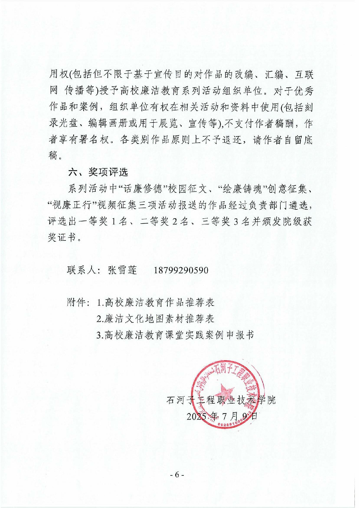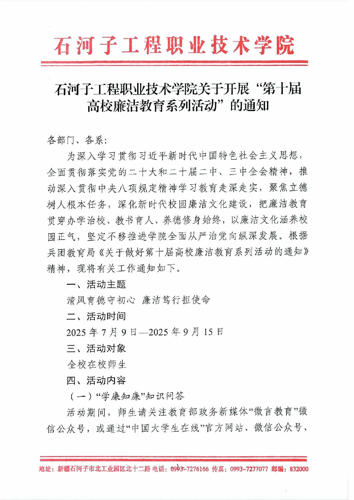 石河子工程职业技术学院关于开展“第十届高校廉洁教育系列活动”的通知