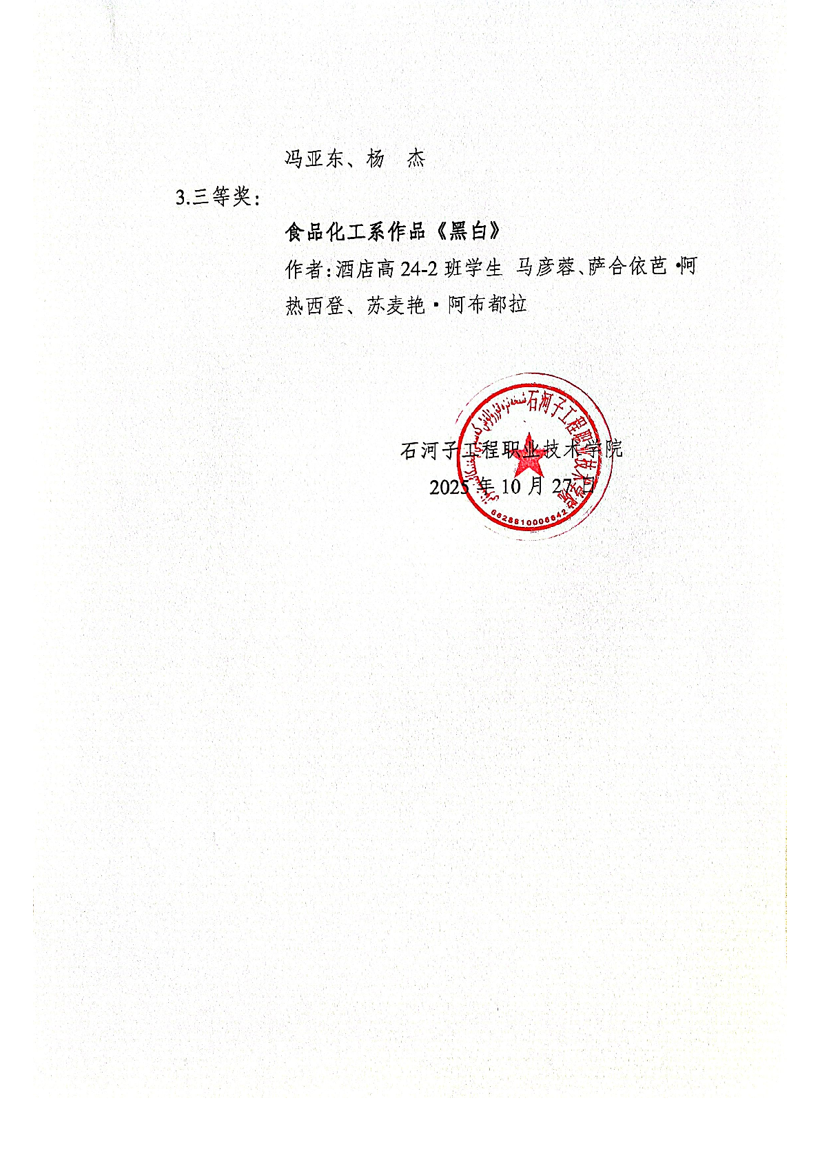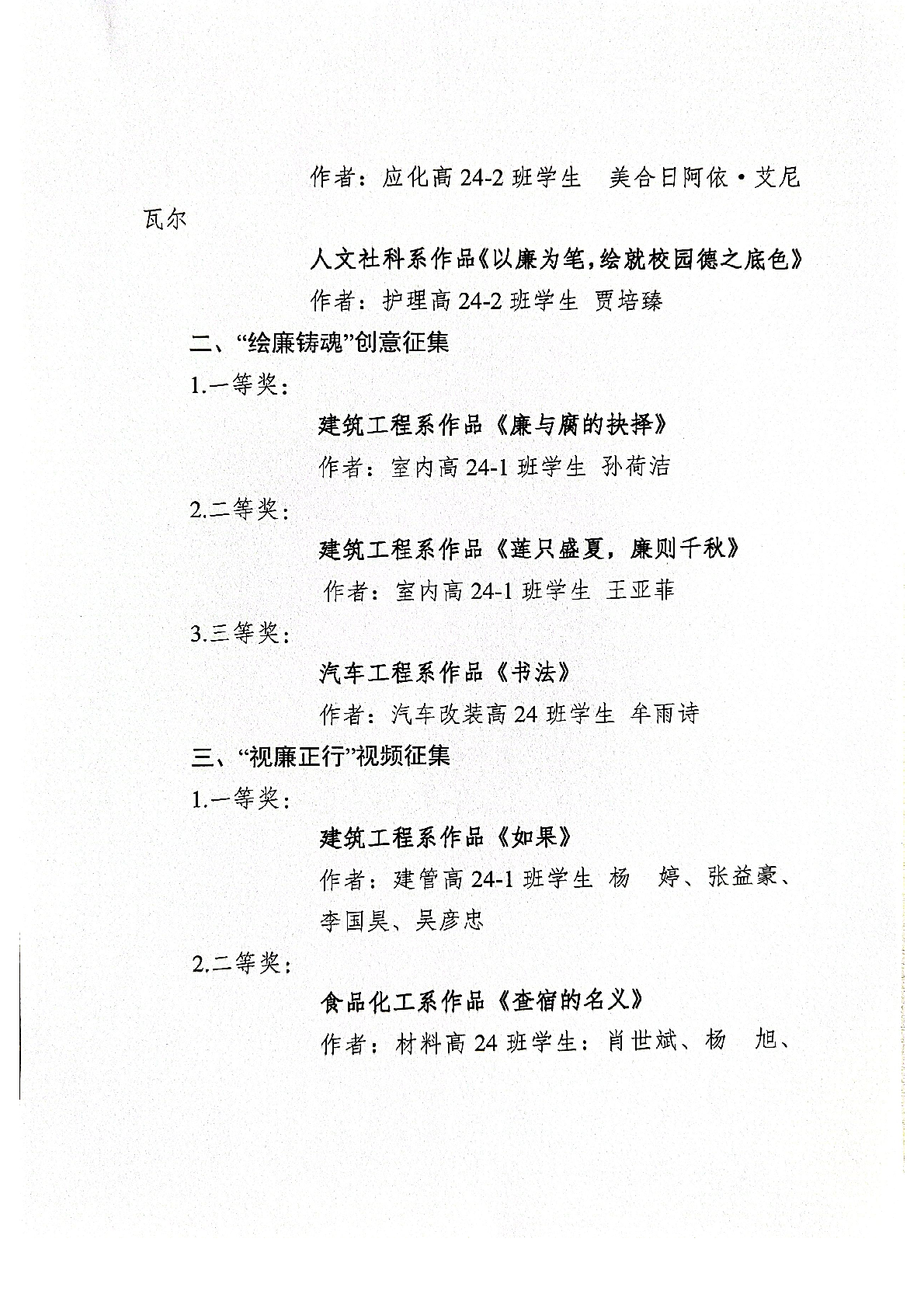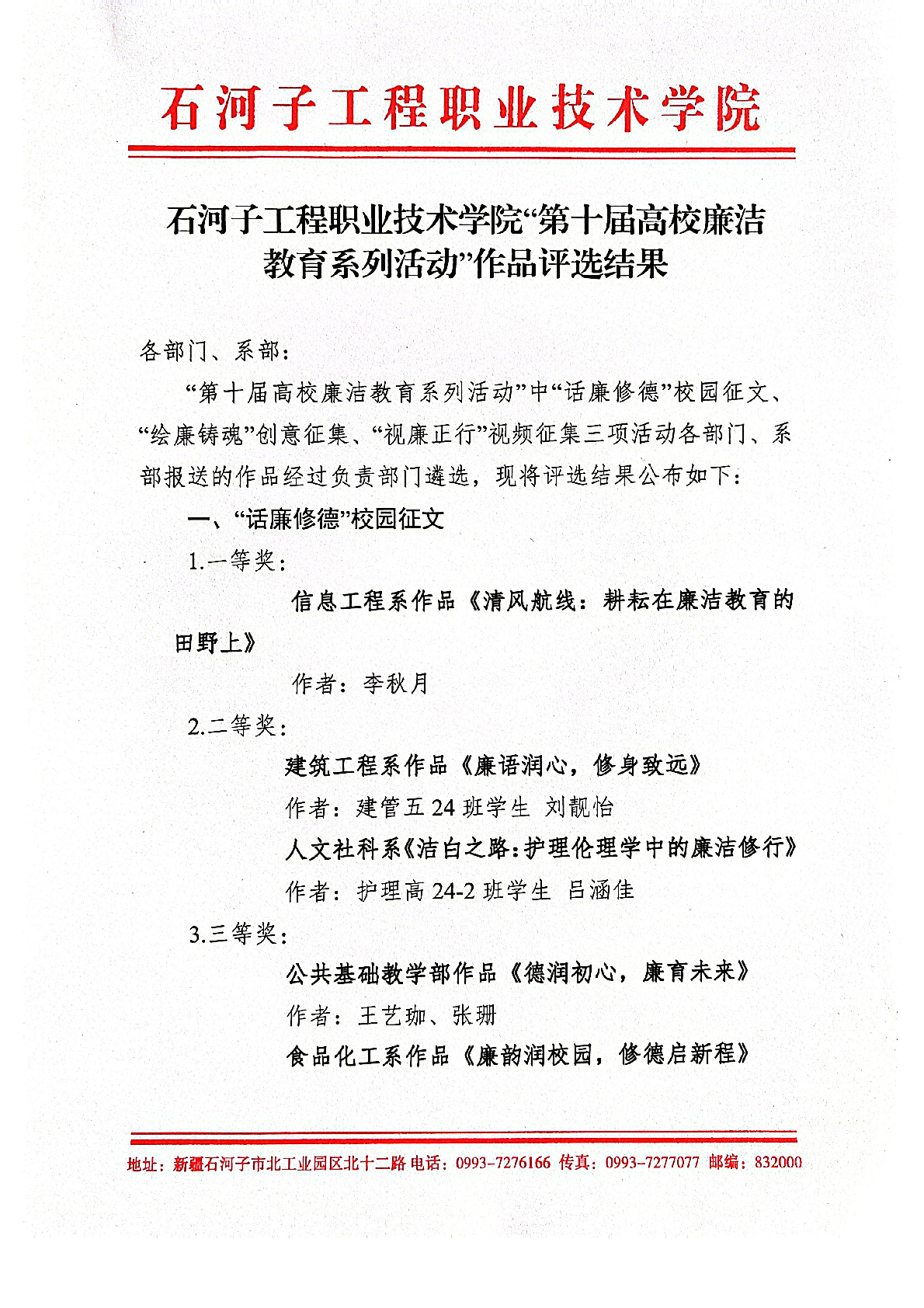 石河子工程职业技术学院“第十届高校廉洁 教育系列活动”作品评选结果